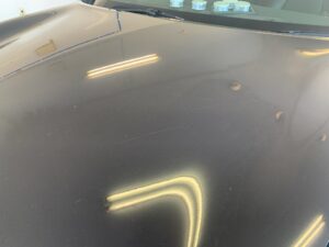 一方、水アカは洗車や雨などによって車や窓に付着する汚れの一種で、水分中の汚染物質や鉱物が乾燥して残ったものです。水アカの主な成分はカルシウムやマグネシウムなどの硬水由来のミネラルですが、その他にも空気中の塵や微細な粒子も含まれます。特に都市部では大気汚染物質が加わるため、より厄介な汚れとなります。(ボディーが白く濁って見えるようになります)